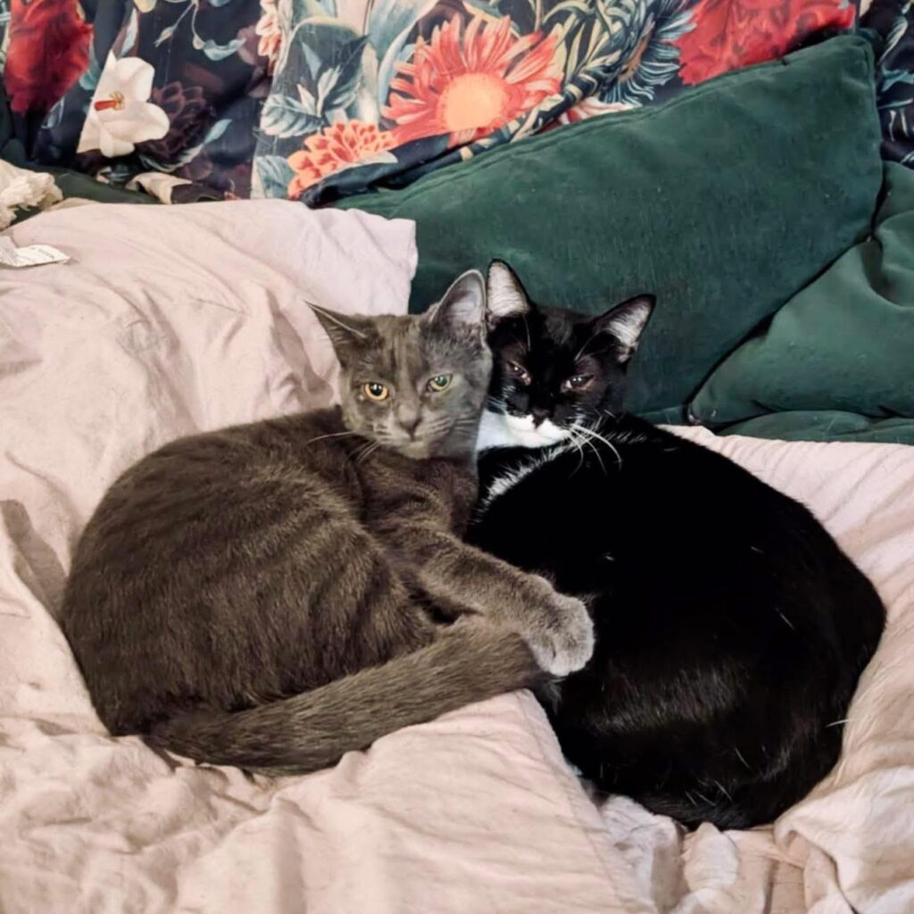 Jasmine (tuxedo mommy) and Harriet (gray tabby) are STILL waiting to be chosen after SEVEN long months in foster care. They are a bonded pair and came from the Montevallo hoarding house. Jasmine is a short and chubby girl. She is playful, loving, and affectionate. She also raised several small kittens from the hoarding house after they were brought into sanctuary. Jasmine is a very special girl. Harriet is much more reserved and likes to come around on her own time. We feel like with time, she will be a loving cat. She is just not quick to trust. They are both spayed and up to date on vaccinations. Would these two beautiful girls complete your family?